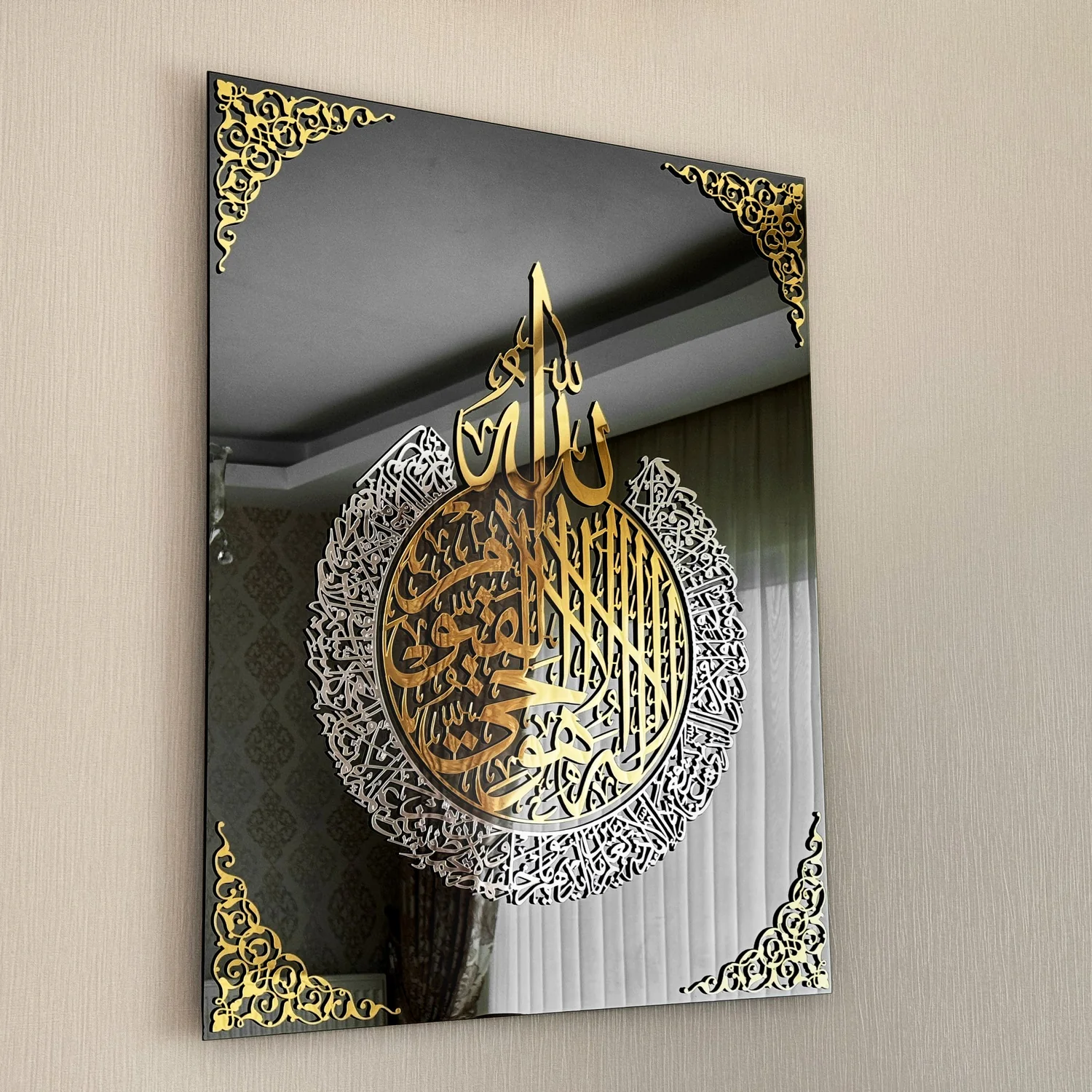 The Ayatul Kursi Islamic Wall Art, crafted from tempered glass, is a stunning piece of Islamic home decor that blends modern craftsmanship with deep spiritual meaning. Featuring laser-cut wooden Arabic calligraphy topped with acrylic for a polished finish, this Quran wall art is meticulously hand-painted, glued, and carefully packaged. Its contemporary design makes it a beautiful addition to any Muslim home decor, and a thoughtful Islamic gift for loved ones.